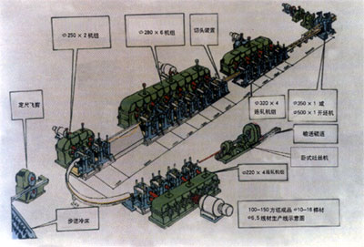 由主電機(jī).主減速機(jī).人字齒輪機(jī)座和一架或幾架軋機(jī)組成.(下列軋機(jī)是安裝于軋鋼車間中的主機(jī)列.本廠還可以根據(jù)用戶需要配套推鋼機(jī).移鋼機(jī).輥道.升降臺.冷床.剪斷機(jī)等各種輔助設(shè)備.)